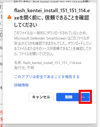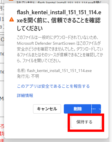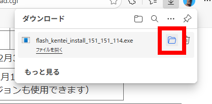 その後、「flash_kentei_install_151_151_114.exe」ファイルをダブルクリックして起動します。